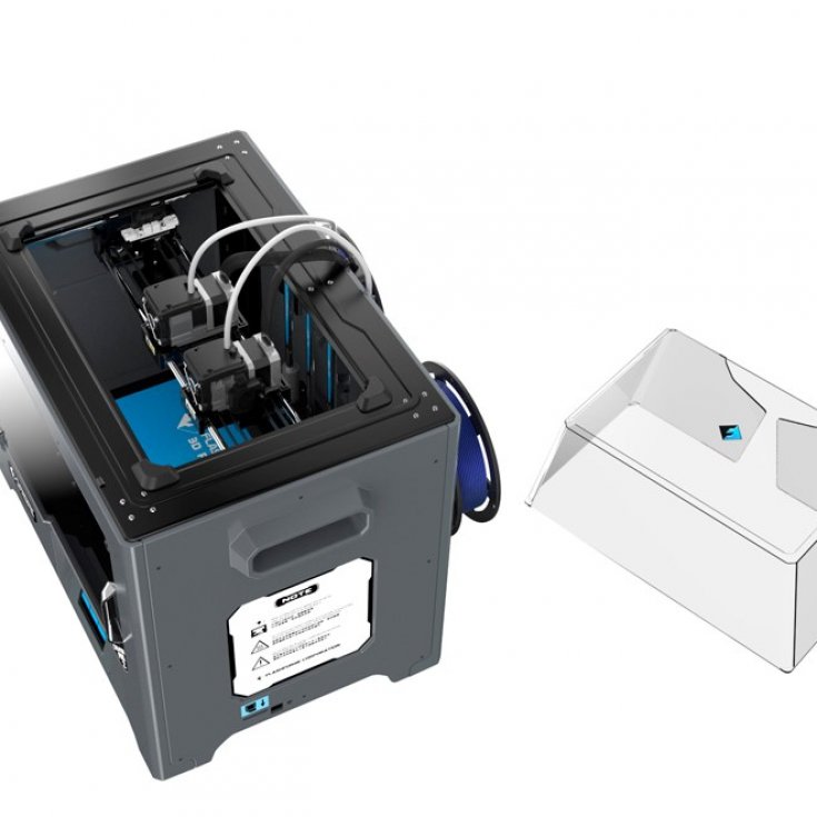 Flashforge Creator Pro 2 – это обновление предыдущей модели с расширением функционала и улучшением параметров. Техника оборудована двумя экструдерами с возможностью независимого использования, что позволяет параллельно работать с разными материалами и цветами без опасности смешивания. Съемная верхняя крышка позволяет создать условия закрытой камеры для печати ABS или открытой для печати PLA-пластиком.