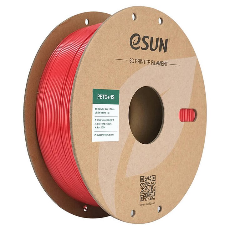 Пластик PETG+HS красного цвета от компании ESUN - это специально усовершенствованная формула классического PETG, оптимизированная для высокоскоростной печати и быстрого затвердевания. Материал был доработан до оптимизированной адгезии во время печати. Это значительно снижает вероятность бракованных изделий и обеспечивает стабильно высокое качество изготовления деталей даже на высоких скоростях.